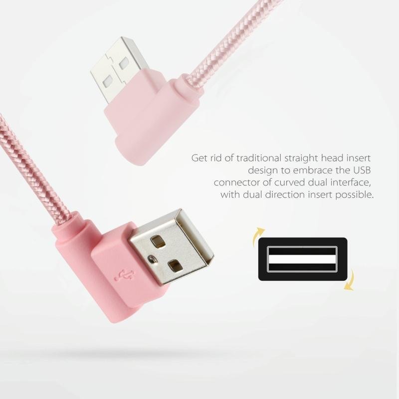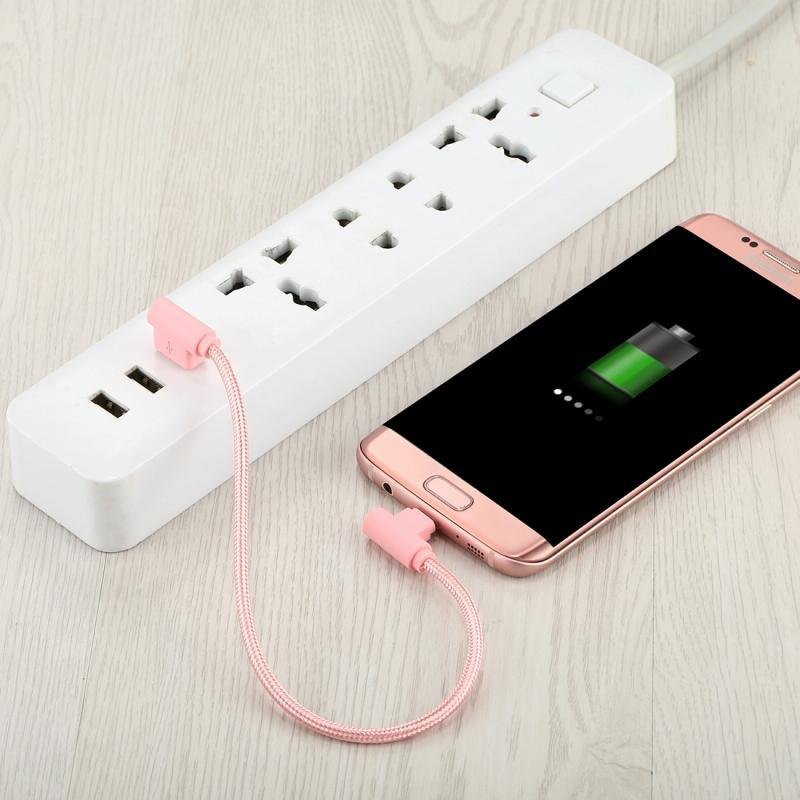 25cm USB to Micro USB Nylon Weave Style Double Elbow Charging Cable