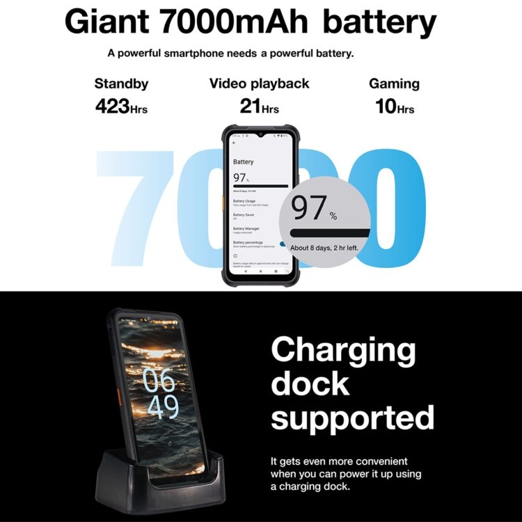 5. Powered by 7000mAh large capacity battery, the battery will make the phone last for several days in normal use.