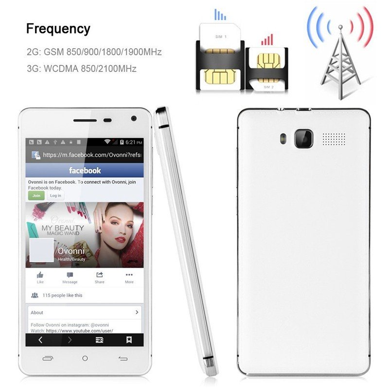 Network | 2G: GSM 850/900/1800/1900MHz 3G: WCDMA 850/2100MHz SIM Card Slots: Dual SIM Dual Standby (Standard SIM + Micro SIM) |