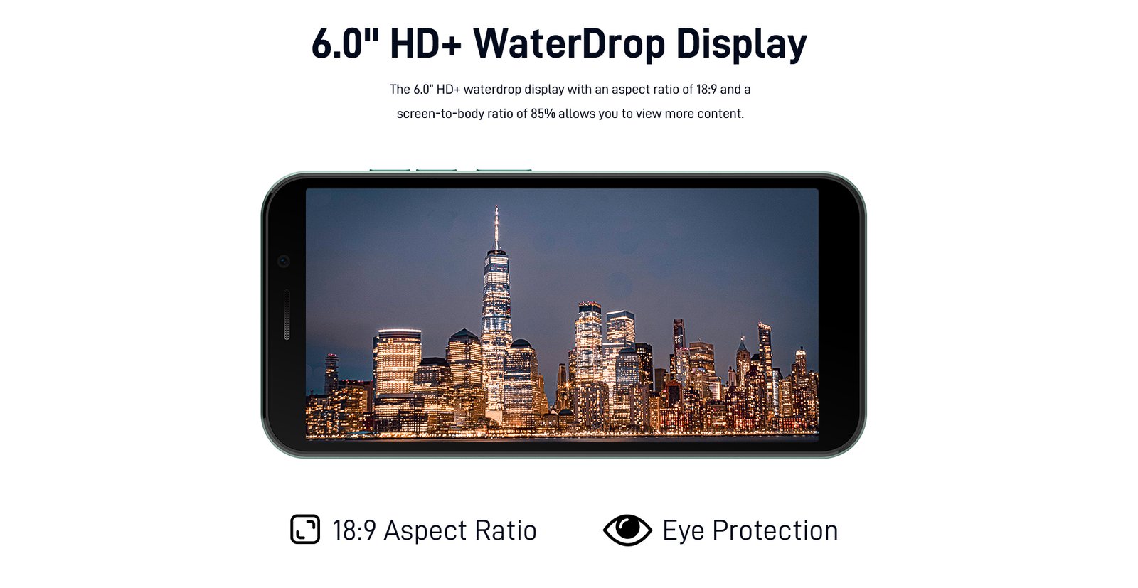 Display | Display Size: 6.0” HD+ Display Resolution: 720*1440, HD+ , 18:9 (~271 ppi density) Screen color: 16.7 million colors Features: 1000:1 contrast Brightness: 420cd/m2 |
