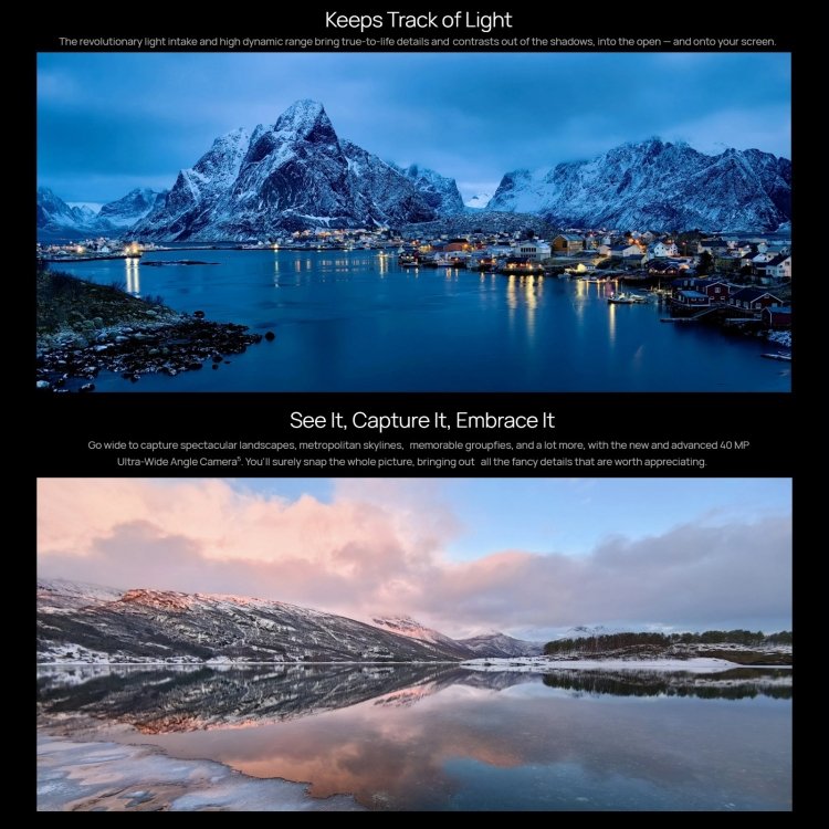 3. Equipped with 4 cameras: Rear cameras: 48MP super-spotting camera (F1.4~F4.0 aperture, OIS optical image stabilization) + 40MP ultra-wide-angle camera (F2.2 aperture) + 48MP super-spotting night vision telephoto camera (F2.1 aperture, OIS optical image stabilization); Front cameras: 13MP ultra wide-angle camera (F2.4 aperture). You can capture wonderful moment with ease, and take high quality pictures.
