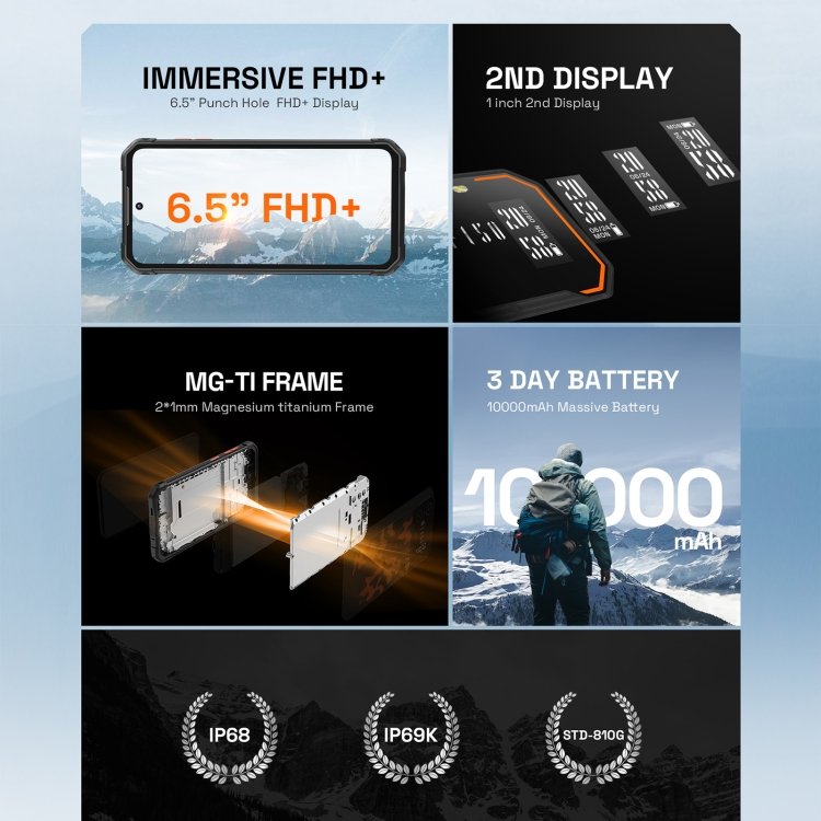 4. IP68/69K / MIL-STD-810G level waterproof dustproof shockproof, operating temperature -40 degree C~70 degree C, 3m concrete deep/360 degree dust-proof/1.5m drop-resistance, it is rugged and durable to use. It can be used in wide usage scenarios and applications.