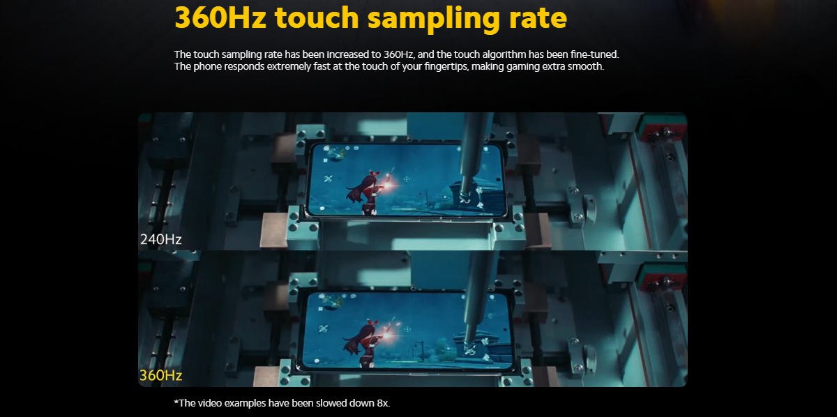 | Display | Display Size: 6.67 inch Type: E4 AMOLED FHD+ Capacitive Touch Screen Resolution: 2400*1080 pixels Touch sampling rate: 360Hz Features: Contrast ratio: 5000000:1, Brightness: 900 nits (typ), 1300 nits (peak), True Color, True Display, HDR10+, MEMC (Motion Estimation and Motion Compensation), Sunlight display 3.0, Corning Gorilla Glass 5 |