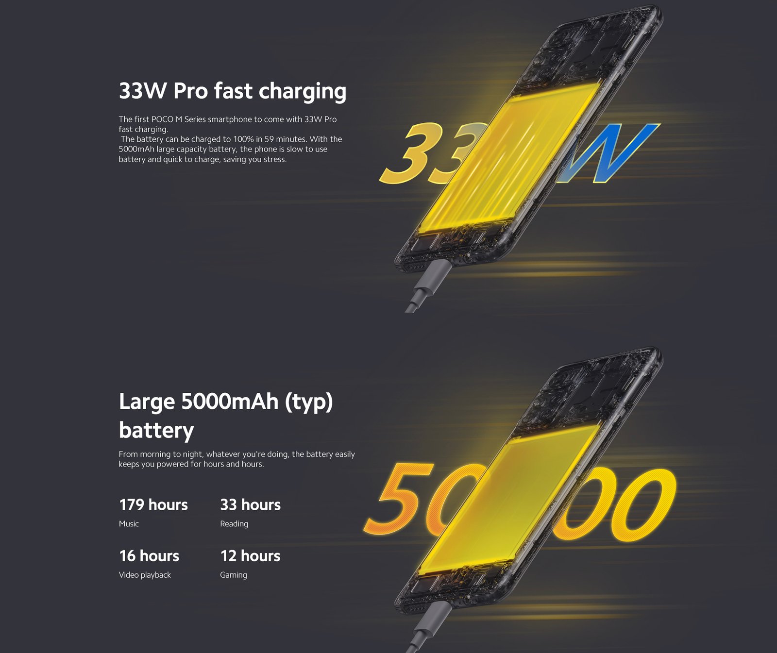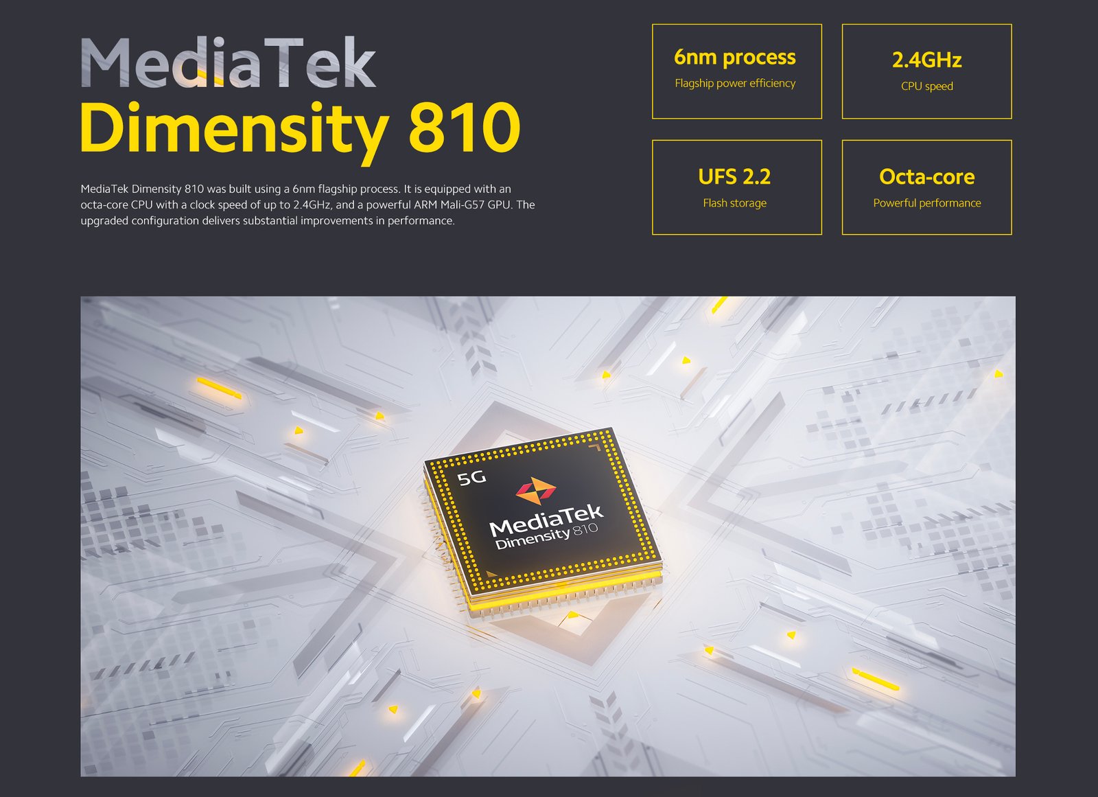 Hardware | OS: MIUI 12.5 for POCO, based on Android 11 CPU: MediaTek Dimensity 810 Octa Core, up to 2.4GHz GPU: Mali G57 RAM: 6GB LPDDR4X ROM: 128GB UFS 2.2 Card Extend: Supports an external TF card up to 1TB (VFAT) |