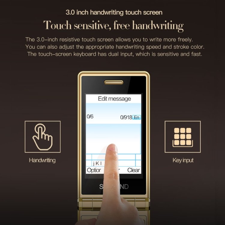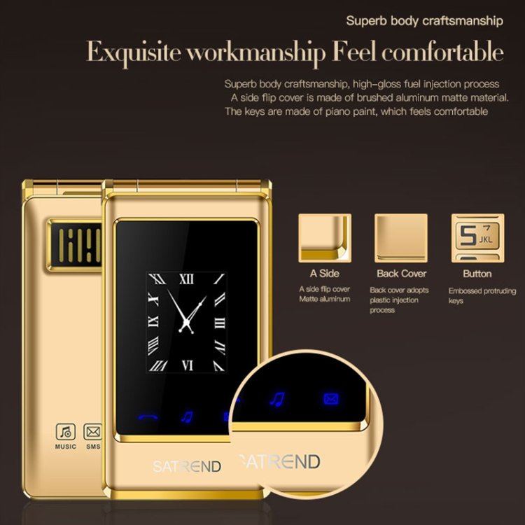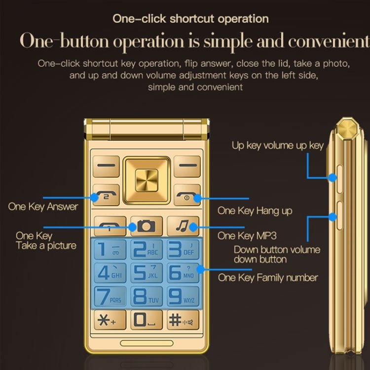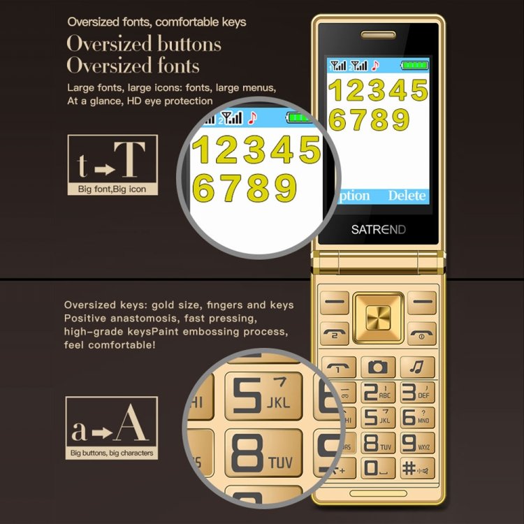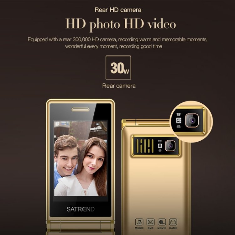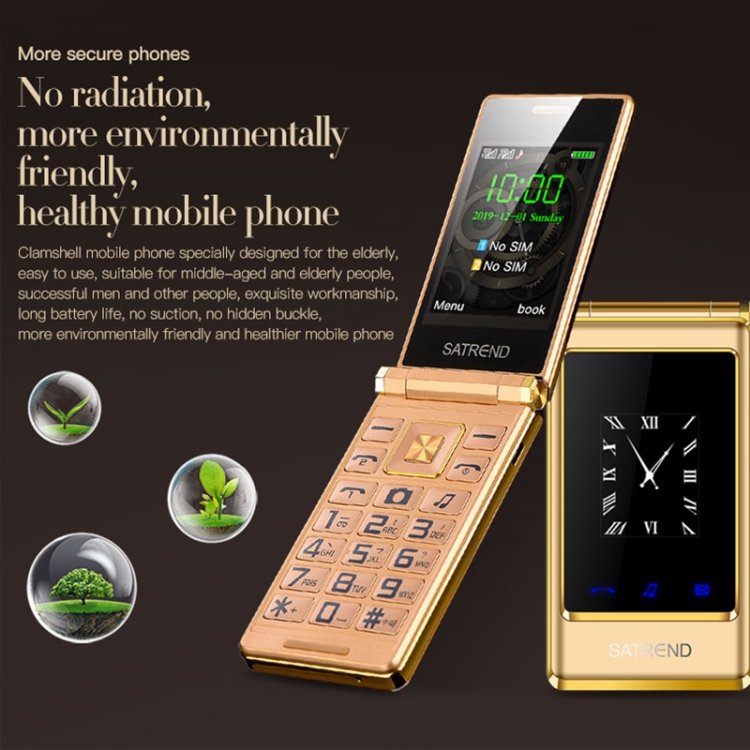 Description 1. Dual screen: External screen 1.77 inch, internal screen 3.0 inch 2. Classic flip mobile phone style, simple, easy to use 3. Dual screen flip, support vibration 4. Camera: Single camera, 0.3MP back camera 5. Big keys design,... (Read more)