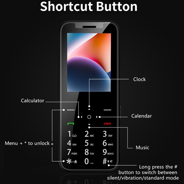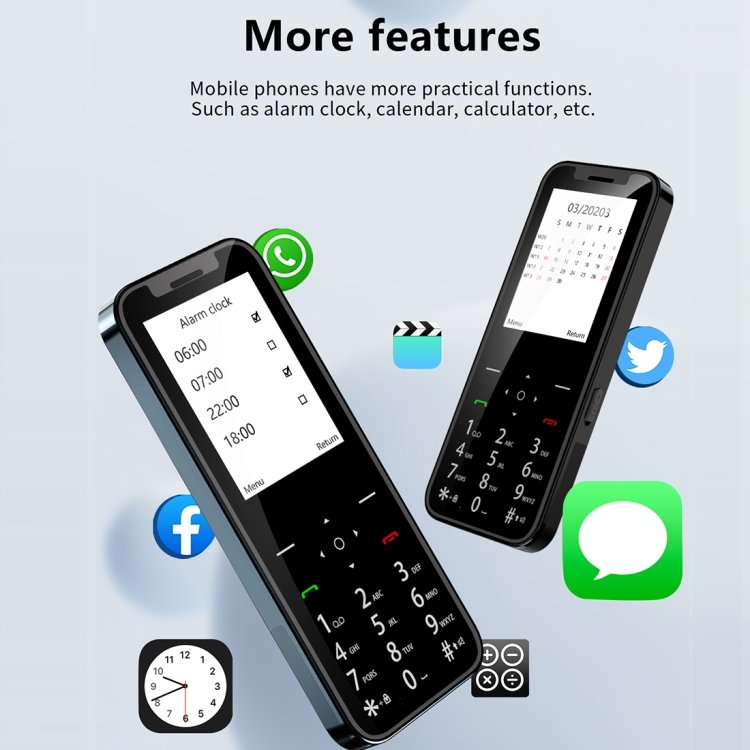 Description Features1. Mini and slim body, compact and portable to carry in pocket. 2. Big keys design, easy-to-use button functionality. 3. Built-in big loudspeaker, you can enjoy music with it. 4. Powered by 1200mAh high capacity battery, long... (Read more)