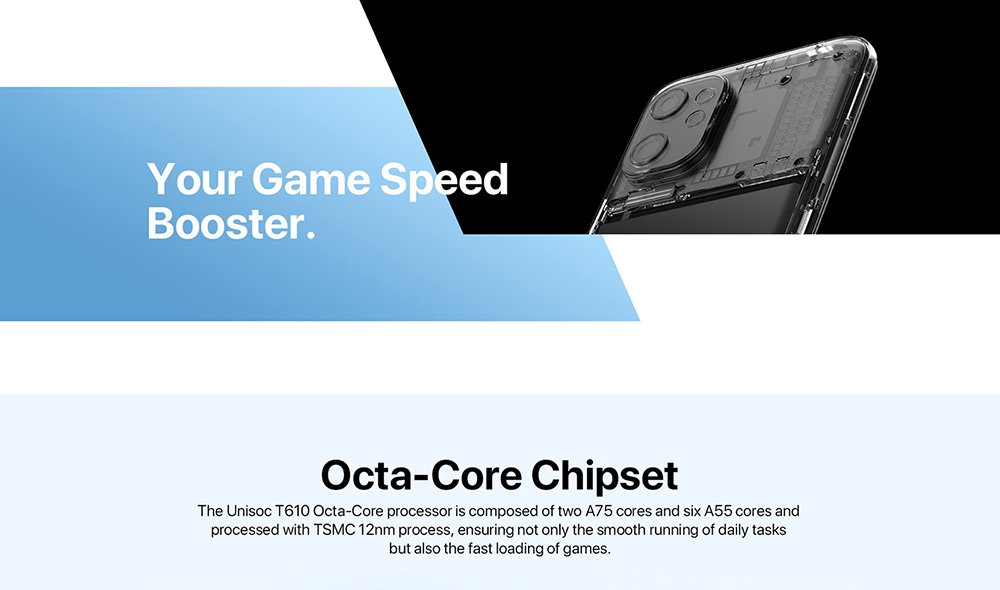 Hardware | OS: Android 11 CPU: Unisoc T610, 2xCortex-A75 & 6xCortex-A55, Octa-core CPU, 1.8GHz GPU: Mali-G52 3EE, 614.4 MHz RAM: 6GB, LPDDR4X ROM: 128GB, eMMC 5.1 Card Extend: Yes, Supports expandable storage up to 256GB |