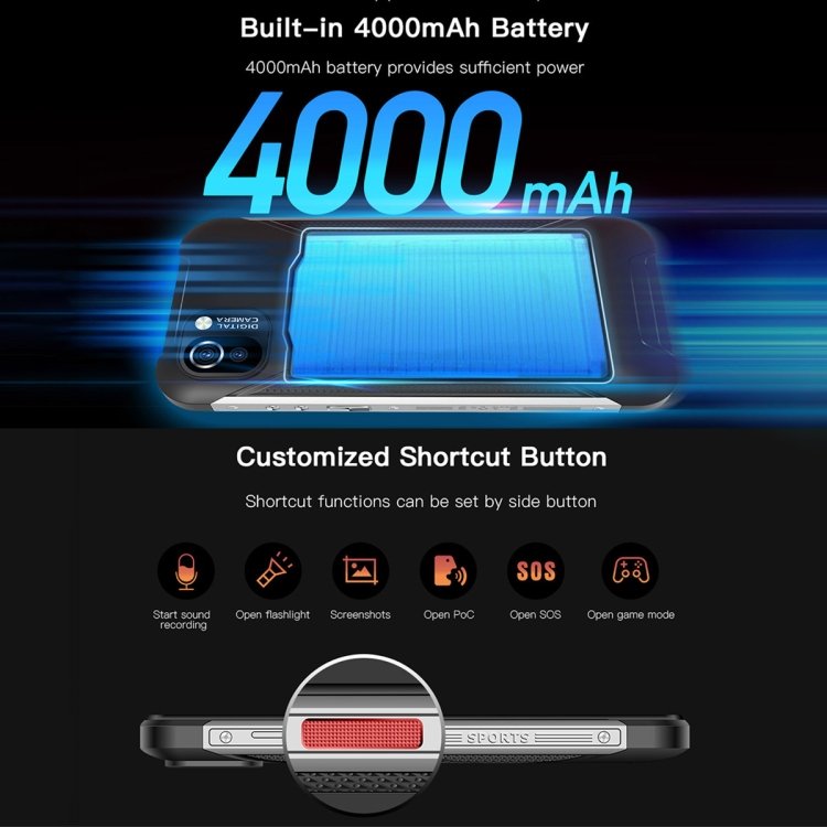Color: Black / RAM: 3GB / Brand: Uniwa / Operating system: Android / Processor Core: Quad Core / Waterproof: IP68 / Network Frequency: 4G / ROM: 32GB / Screen Size: 5.50 - 5.99 Inch