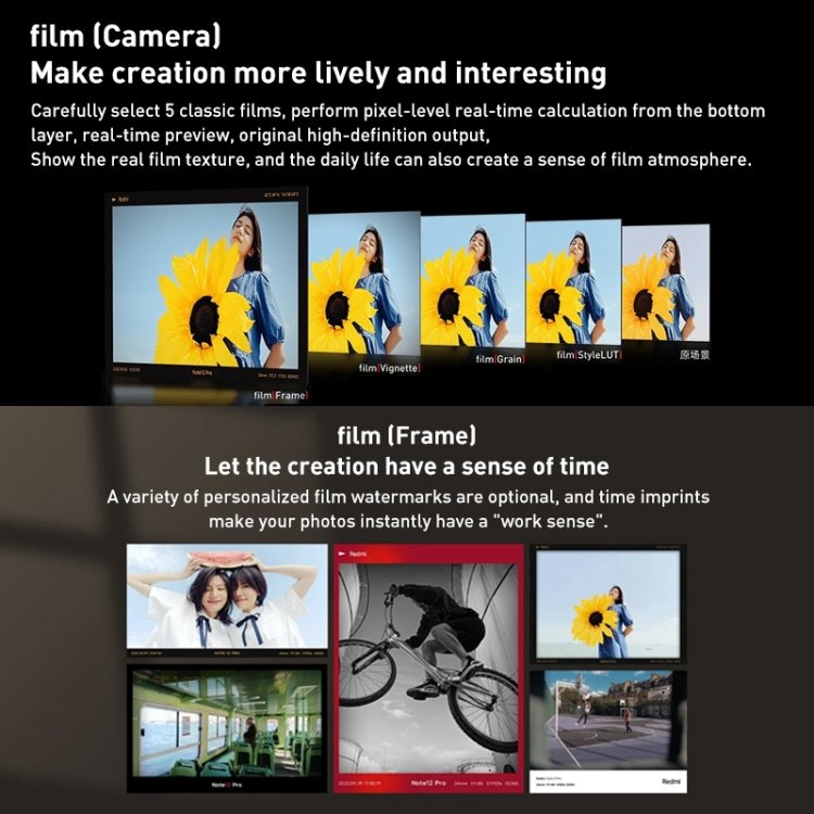 4. Rear camera function: Film Camera, film frame, Magic Sky Change, video super anti-shake, privacy protection watermark, time-lapse macro, time-lapse photography, top point focus, album beauty, AI watermark, axis shift effect, VLOG, long exposure, 4K video, motion photos, gesture photo, voice caption, voice-activated photo, timde continuous shooting, exposure feedback, ID card photocopying mode, intelligent composition.