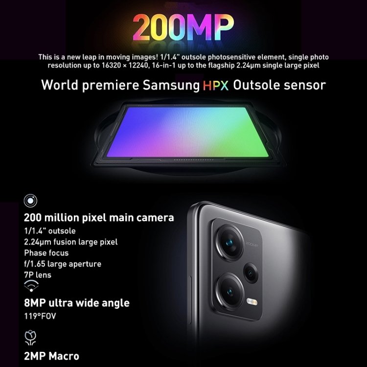 3. Equipped with 4 cameras, 200MP primary camera (1/1.4 inch, support 4in1 1.12um pixel, support 16in1 2.24um pixel, OIS optical image stabilization, 7P lens, f/1 .65 night scene large aperture) + 8MP 119-degree FOV ultra-wide-angle lens + 2MP macro camera rear cameras and 16MP front camera. Take beautiful scenery pictures and selfie.