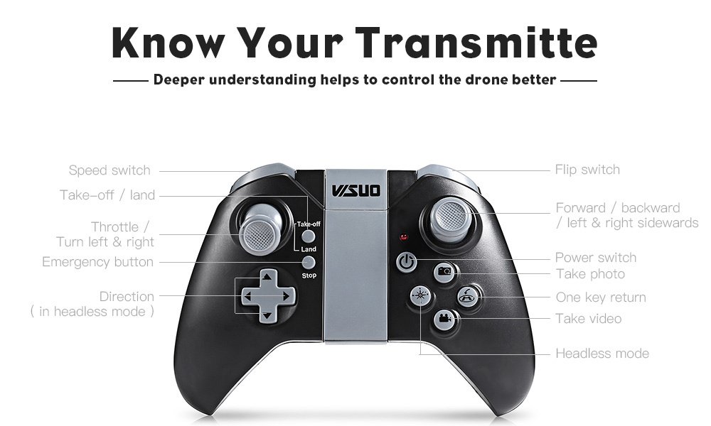 ● Headless Mode allows the drone to fly according to the movement of joysticks in spite of its orientation