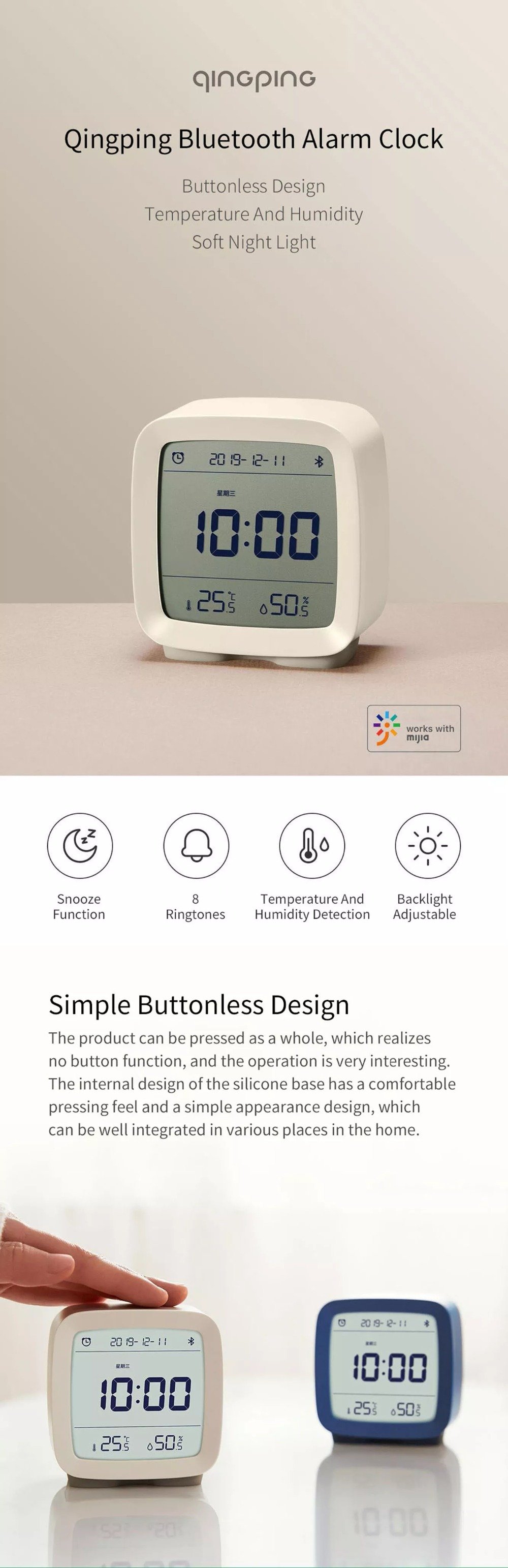 ClearGrass CGD1 Bluetooth No Button Alarm Clock smart home APP Control Temperature Humidity Display LCD Screen Adjustable Nightlight - Simple Buttonless Design The product can be pressed as a whole, which realizes no button function, and the... (Read more)