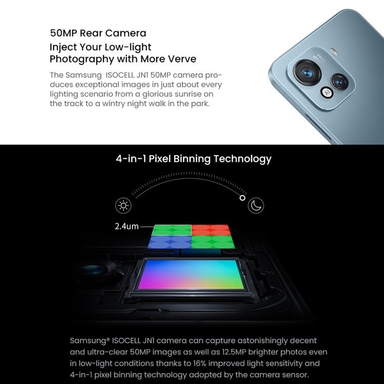 4. Caméra arrière 50MP ISOCELL JN1 + caméra frontale 8MP ISOCELL 4H7, capturez des moments merveilleux, prenez des photos de haute qualité.