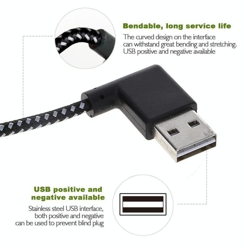 Câble de chargement de synchronisation de données à double coude USB vers micro USB de 20 cm 2A