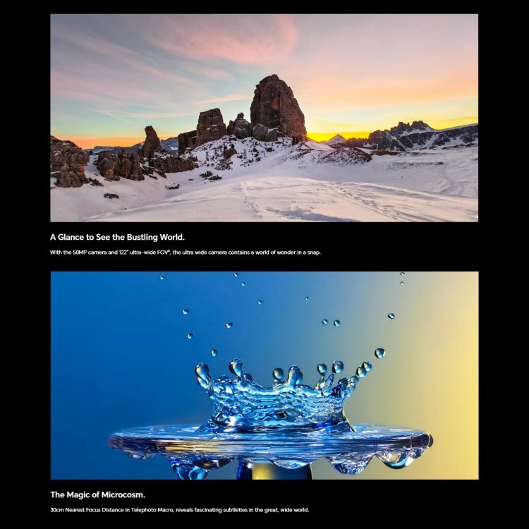4. Équipé de 5 caméras : 3 caméras arrière et 2 caméras avant à l'écran, prenez des photos de haute qualité et un excellent selfie.Trois caméras arrière : caméra grand angle 50MP (ouverture f/1.6, prend en charge la stabilisation d'image optique OIS) + caméra téléobjectif périscope 50MP (ouverture f/3.0, prend en charge la stabilisation d'image optique OIS) + caméra ultra grand angle 50MP (f/2.0ouverture), prend en charge la mise au point laser 8x8 dTOF;Caméra frontale : caméra grand angle 12 MP (ouverture f/2, 4) + caméra 3D à détection de profondeur.