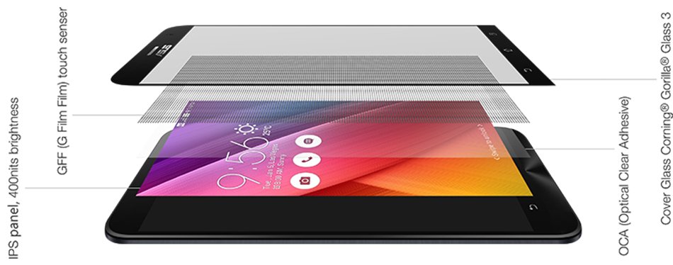 Pour la meilleure clarté, luminosité et réactivité tactile, ZenFone 2 intègre exclusive technologie TruVivid ASUS. Ce transforme le classiques quatre-couche conception de façon transparente dans une société innovante deux-couche conception, avec plein stratification. Fusion la couverture-verre et tactile-panneau couches élimine le gap air, apporter tout ce plus près à ZenFone 2's surface-et plus près de votre contact.