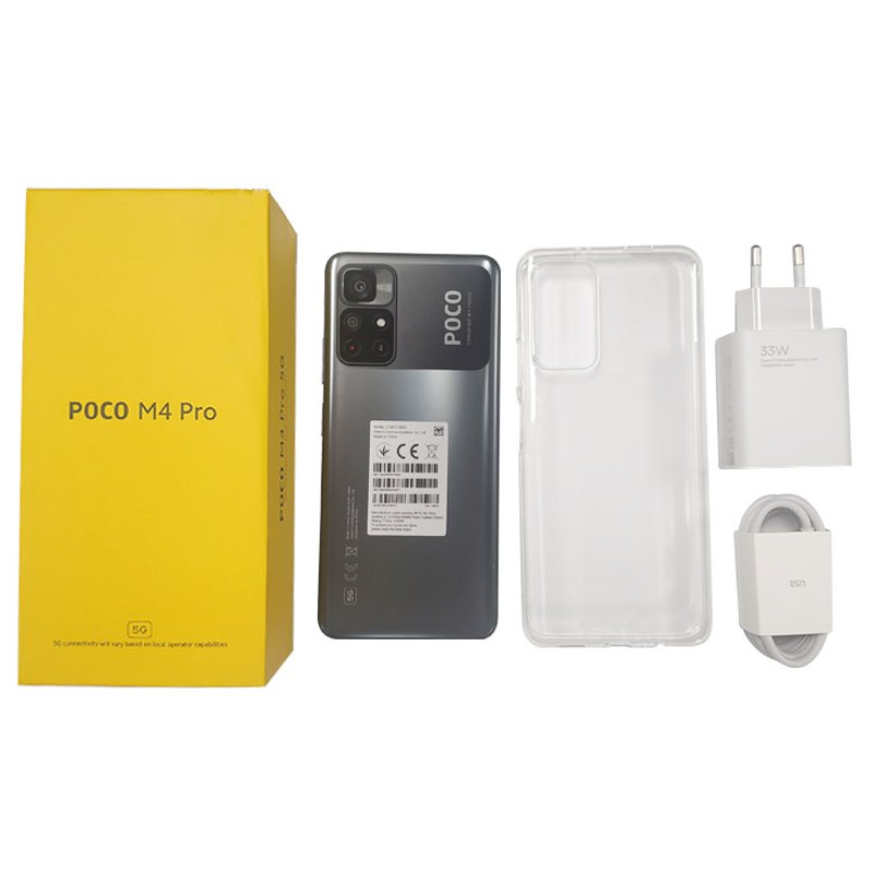 Liste de colisage | 1 x POCO M4 Pro Téléphone intelligent 5G 1 câble USB Type-C 1 x chargeur UE 1 étui de protection Soft 1 x outil d'éjection de carte SIM |