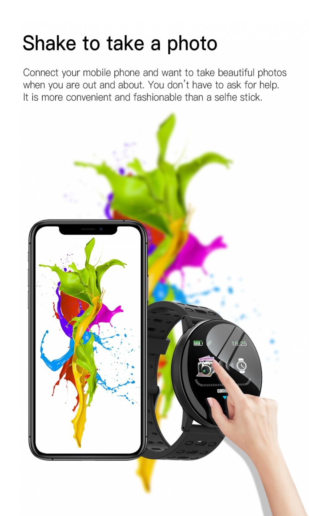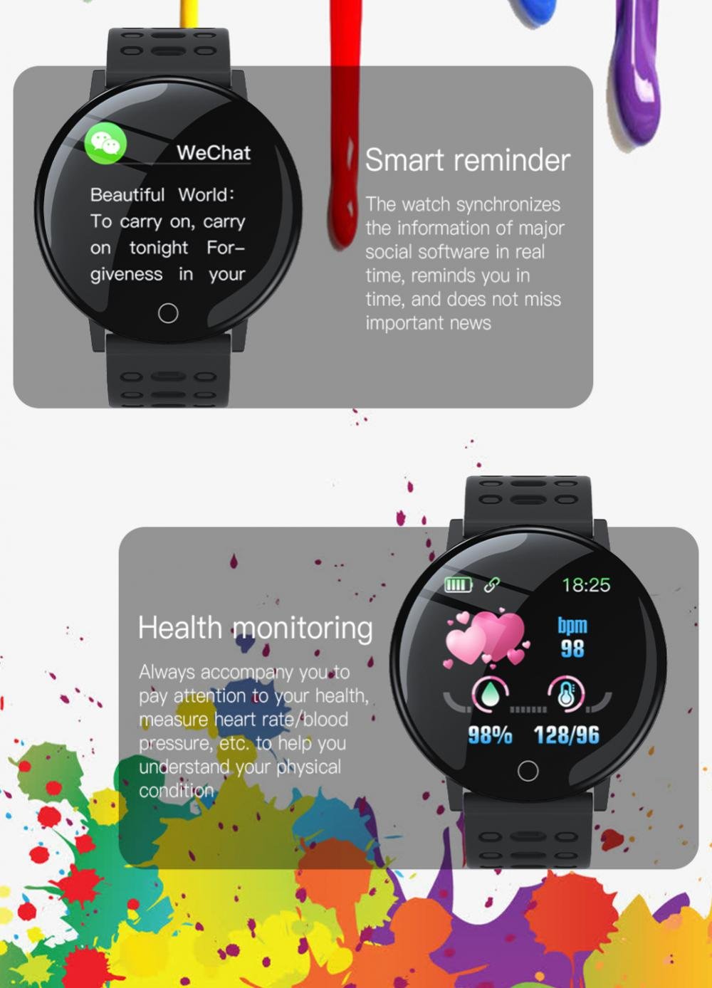 3.IP65 étanche pour la vie quotidienne, mode multi-sport, adapté aux sports de plein air. Enregistrez automatiquement les données de mouvement et de calories quotidiennes.