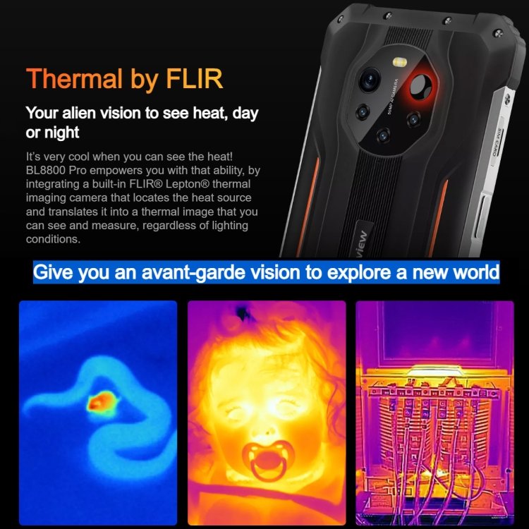 4. Caméras arrière : caméra principale ultra-claire 50 MP AI, caméra assistée thermique 5 MP, caméra de profondeur 2 x 2 MP et caméra thermique FLIR Lepton, renforcent votre vision extraterrestre pour voir la chaleur et les dangers cachés.