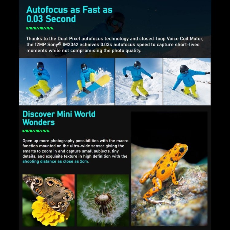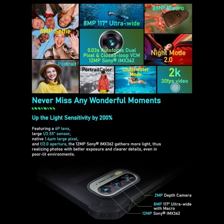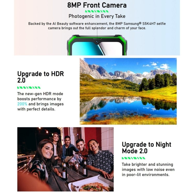 3. Caméra ultra grand angle et macro 12MP IMX362 + 8.0MP GC08A3-WA1XA + profondeur 2MP GC030A, capturez un moment merveilleux, prenez des photos très claires;Caméra frontale 8.0MP S5K4H7, idéale pour le chat vidéo et le selfie.