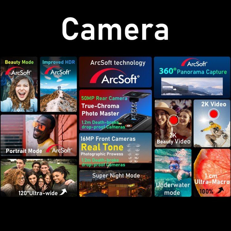 4. Caméras arrière : 50MP S5KJN1SQ03-FGX9 + 8MP GC8034 grand angle et macro + 0, 3MP GC032A caméras arrière, avec flash, bon pour prendre des photos claires.