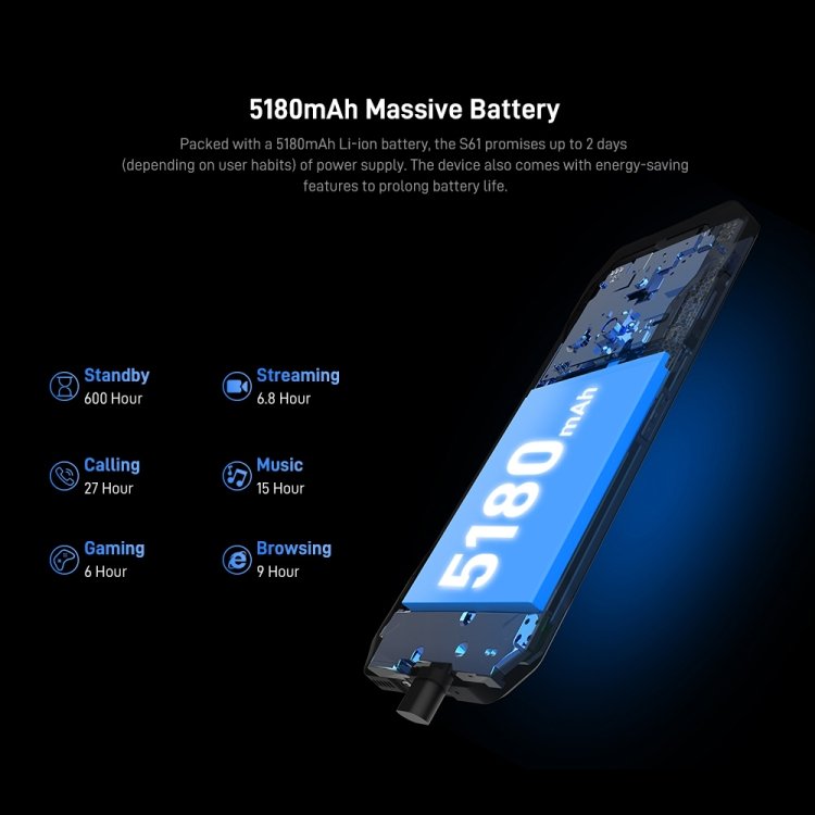 5. Alimentée par une batterie haute capacité de 5180 mAh, la batterie permet au téléphone de durer plusieurs jours en utilisation normale.