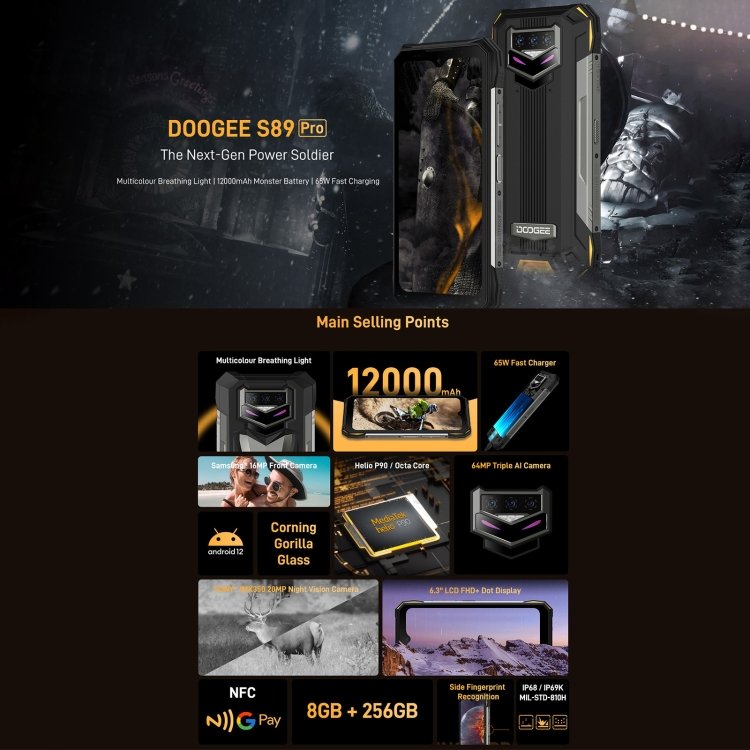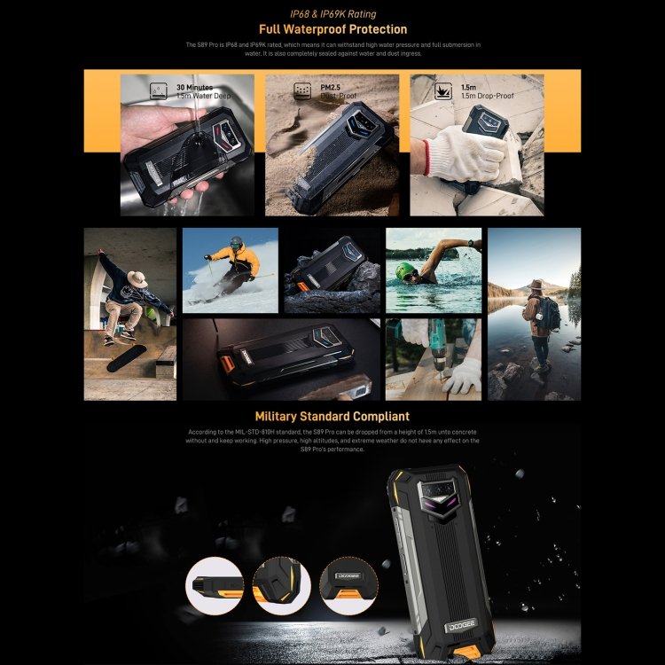 RAM: 8Go / Marque: Doogee / Système d'exploitation: Android / Coeur du Processeur: Octo-coeur / Etanche: IP68 IP69K / Fréquence Réseau: 4G / ROM: 256 Go / Taille d'Écran: 6.00 - 6.49 Pouces / Capacité Batterie: +9000 mAh