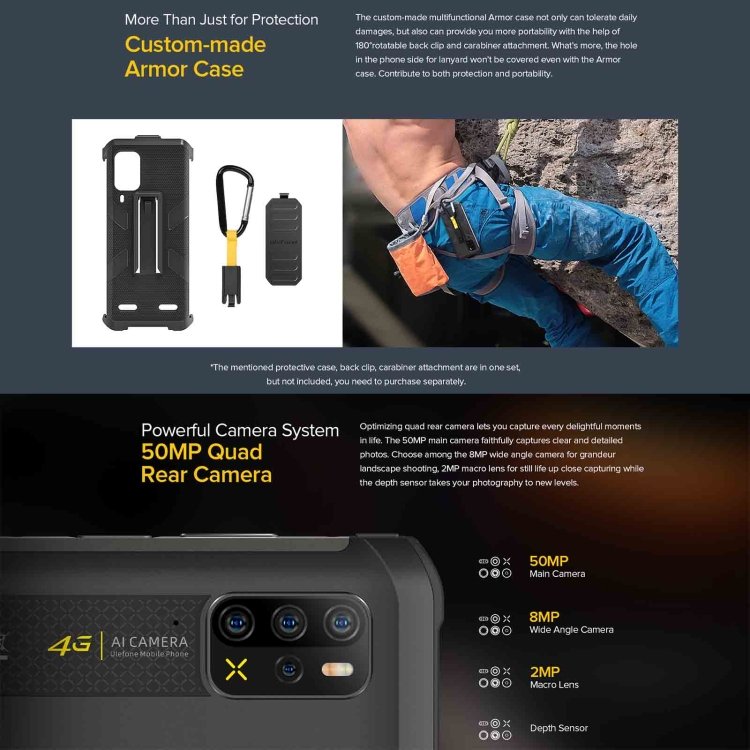 RAM: 8Go / Marque: Ulefone / Système d'exploitation: Android / Coeur du Processeur: Octo-coeur / Etanche: IP68 IP69K / Fréquence Réseau: 4G / ROM: 128 Go / Taille d'Écran: 6.50 - 6.99 Pouces / Capacité Batterie: 5000 - 6999 mAh