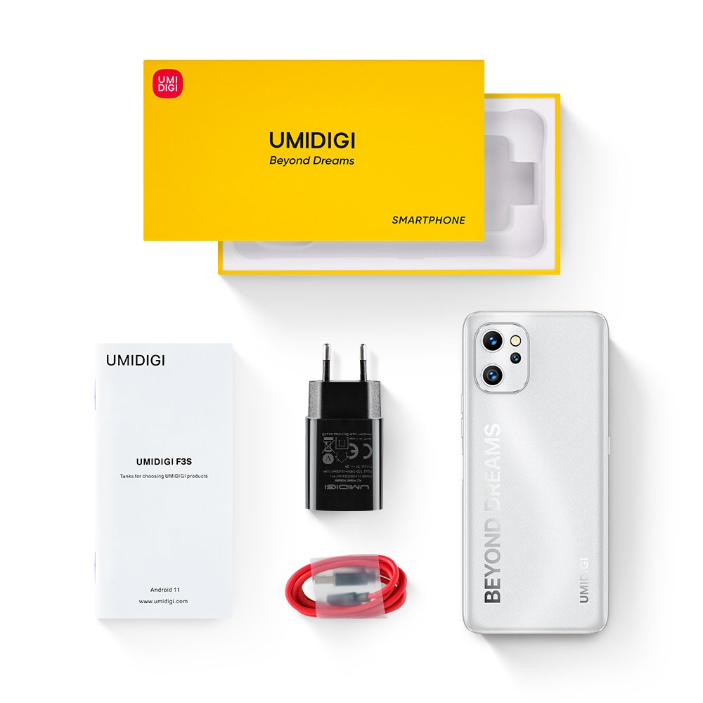 Liste de colisage | 1 téléphone intelligent UMIDIGI F3S 1 adaptateur secteur 1 câble Type-C 1 x protecteur d'écran (pré-appliqué) 1 x éjecteur de plateau SIM |