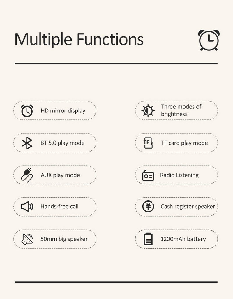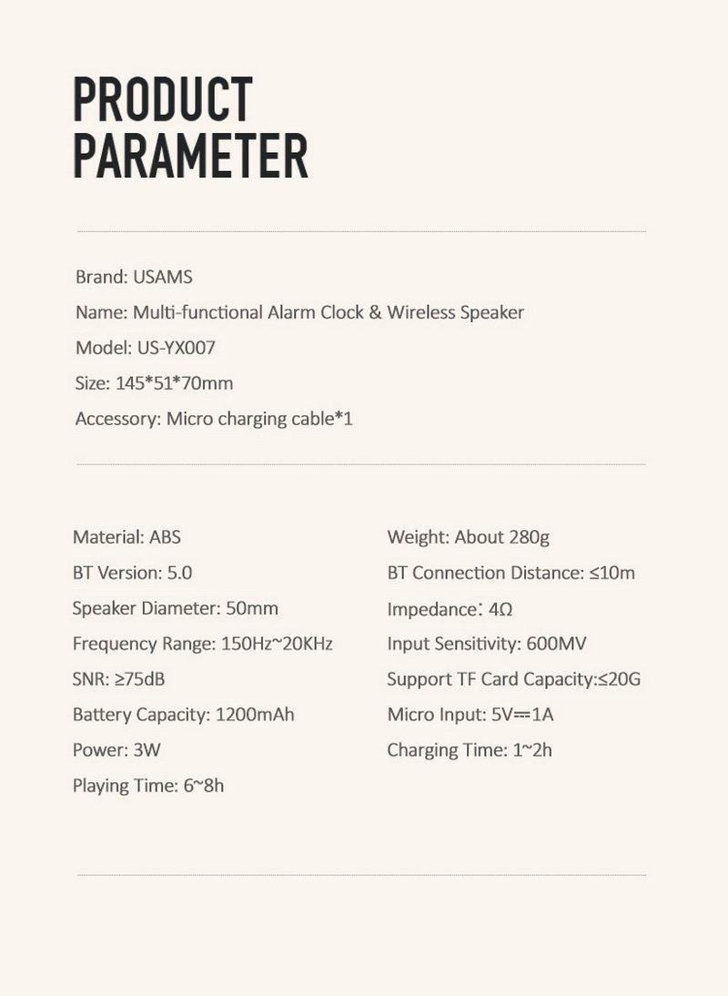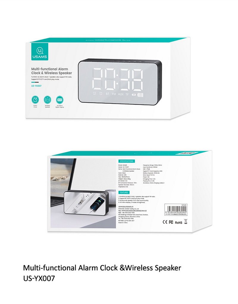 USAMS US-YX007 Multifonction HD Affichage Numérique Réveil Haut-Parleur Sans Fil Bluetooth